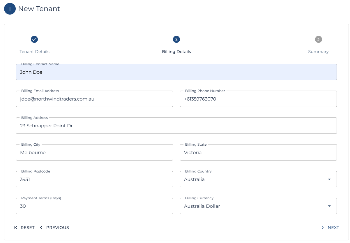 | Billing Information (Tenant) |