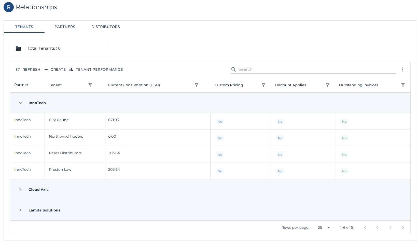 | Note: This links the Tenant to a Partner. |