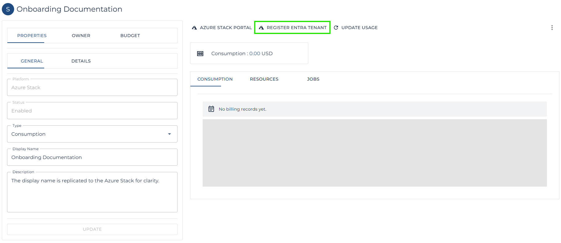 | Note: This operation is managed through the Azure Stack itself and requires the tenant to complete the process, the tenant must use an Entra user with permission to register Entra Applications. Such as a Global Administrator. |