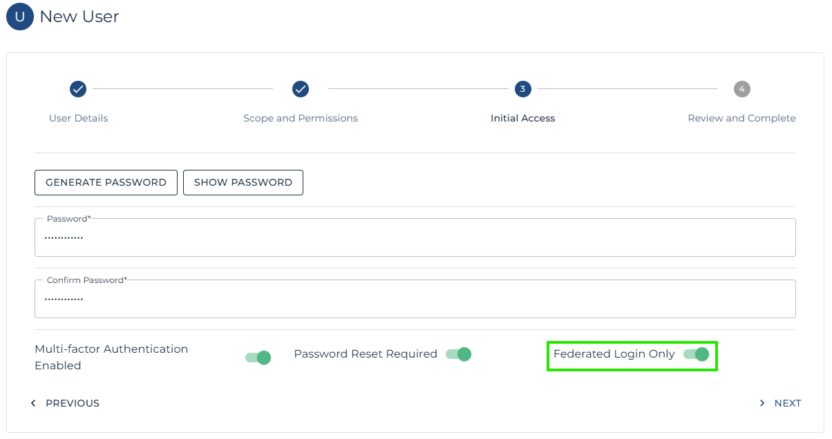 Note: One option of interest is the CMS Login Allowed. This can be switched to Federated Only, ensuring the user cannot login using the CMS authentication flow and making the tenants Entra or Google authentication system responsible.