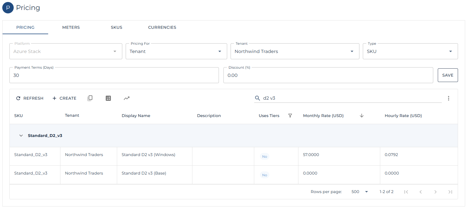 Some opportunities may have been sold to tenants with custom pricing or with credits which need to be applied each month. The section below continues the flow by showing custom pricing and credits being applied to specific Azure Stack VM SKUs.